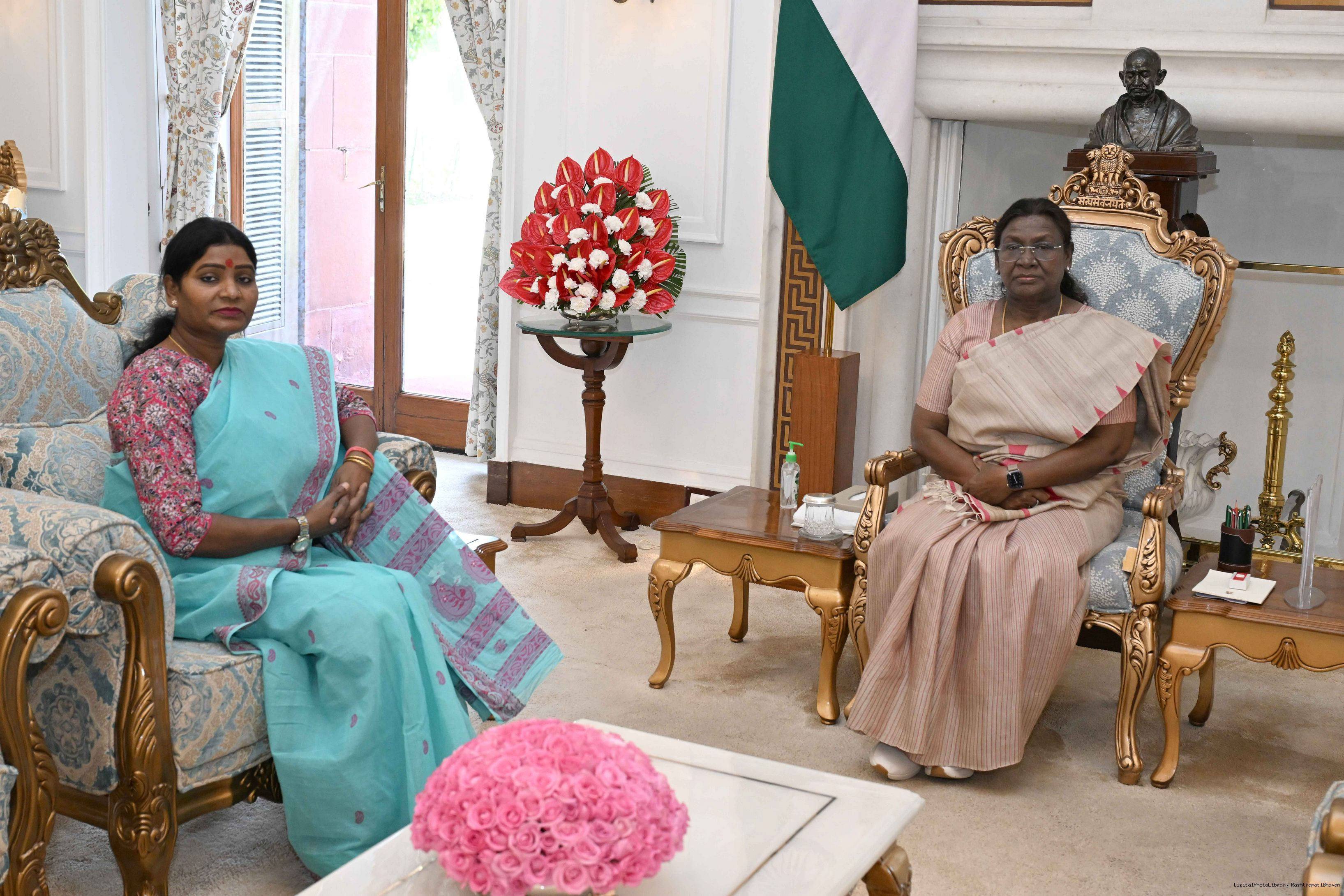 Dr. Damayanti Beshra along with Ms. Joba Mrumu, Ms. Tala Tudu and others from Women's Wing of the AISWA and the Jaher Than Committee, Karandih, Jamshedpur meeting the President of India, Smt Droupadi Murmu at Rashtrapati Bhavan on August 26, 2025.