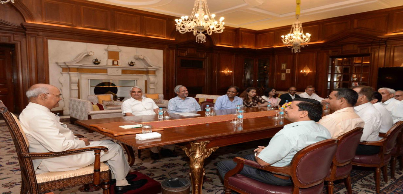 Dr. Anil Agrawal, MP (RS) with others meeting with the President of India, Shri Ram Nath Kovind, at Rashtrapati Bhavan on May 12, 2018.