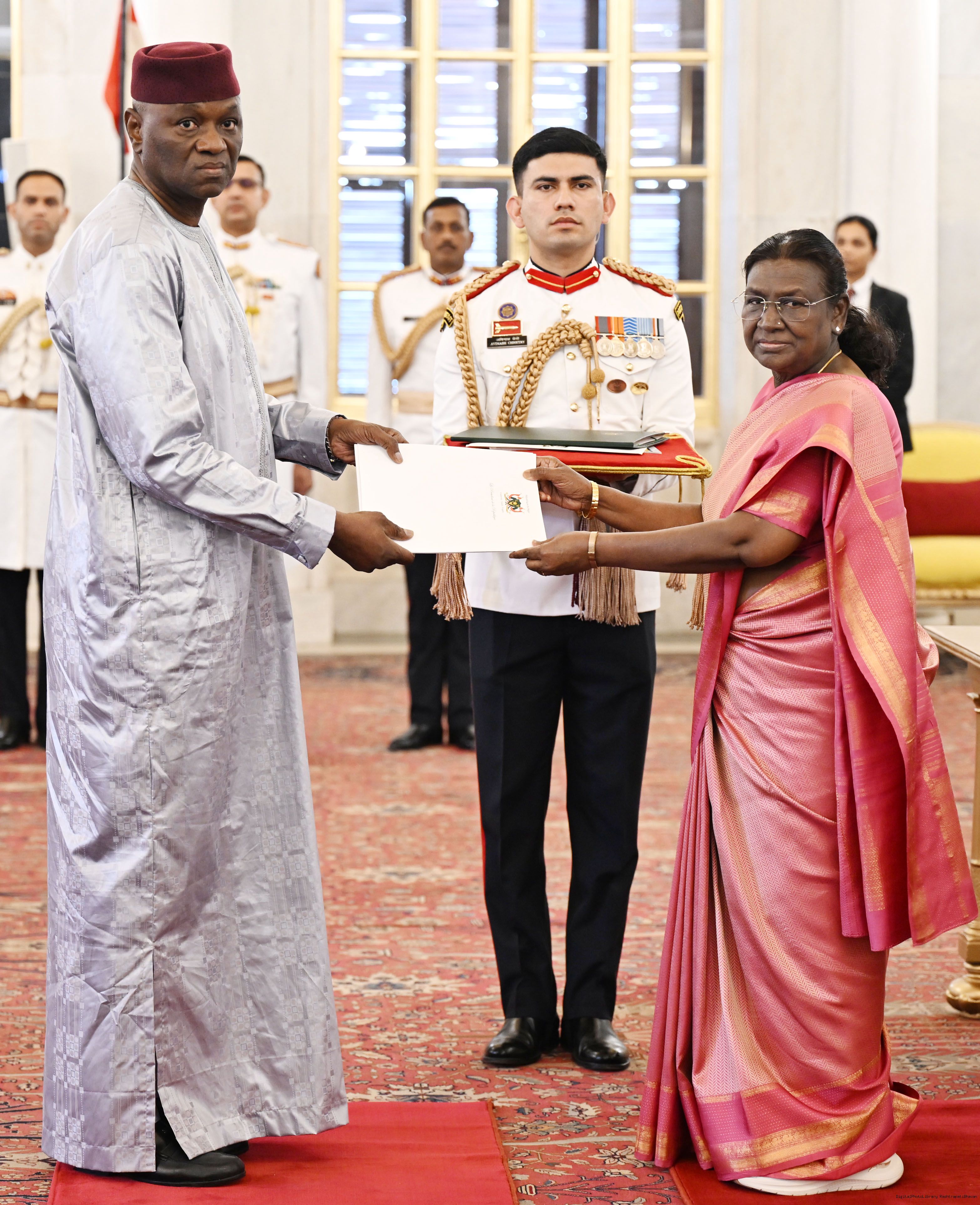 H.E. Mr Zada Seidou, Ambassador of the Republic of Niger presenting credentials to the President of India, Smt Droupadi Murmu at a ceremony held at Rashtrapati Bhavan on May 30, 2025.