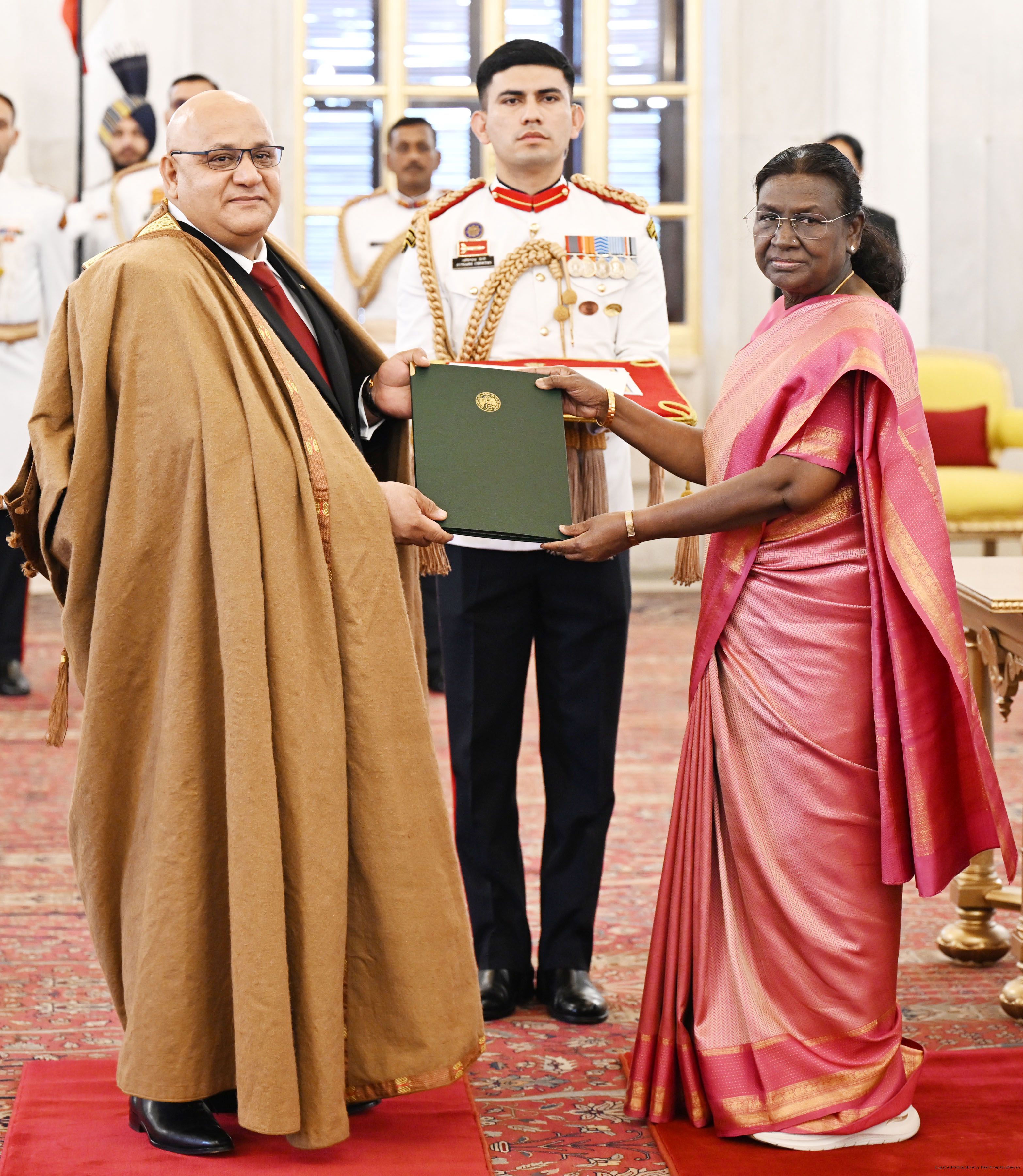 H.E. Mr Abdenor Khelifi, Ambassador of the People’s Democratic Republic of Algeria presenting credentials to the President of India, Smt Droupadi Murmu at a ceremony held at Rashtrapati Bhavan on May 30, 2025.