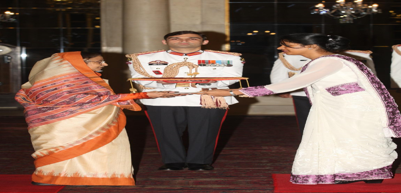 HE Mrs Aashna Wandani Radha Kanhai, Ambassador-Designate of the Republic of Suriname presenting her Credentials to the President of India, Smt Pratibha Devisingh Patil at Rashtrapati Bhavan in New Delhi on April 24, 2012