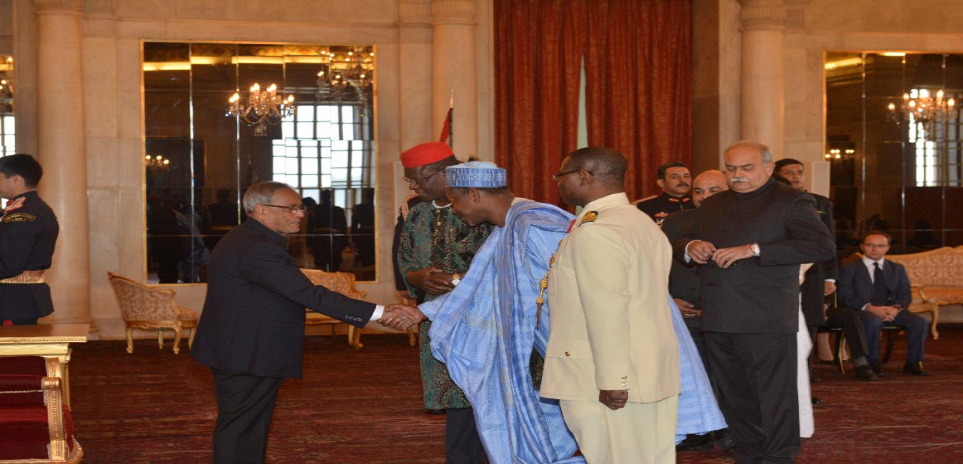 HE Mr Ndubuisi Vitus Amaku, from High of The Federal Republic of Nigeria presenting his credentials to The President of India, Shri Pranab Mukherjee at Rashtrapati Bhavan on Jan 22,2013