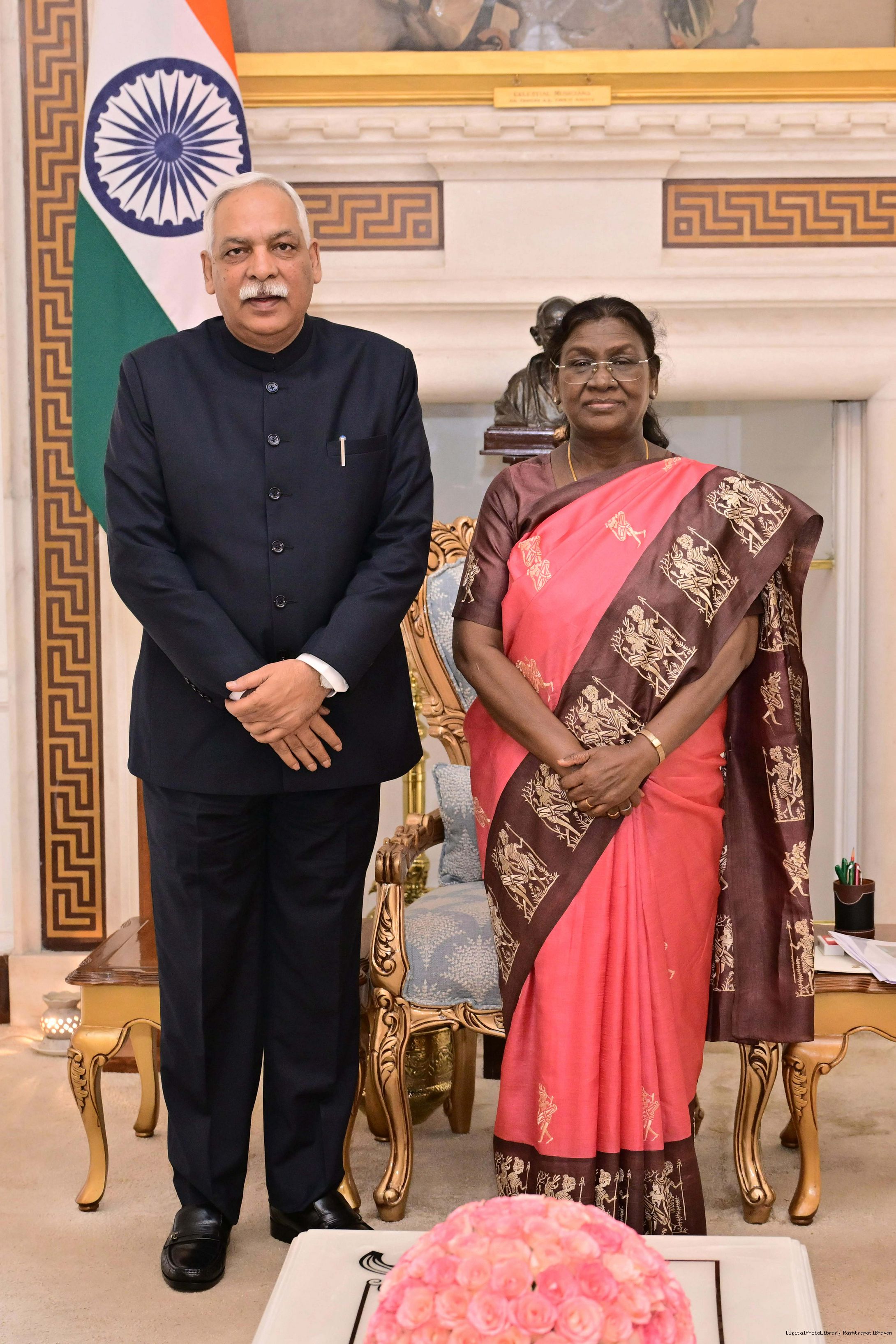 Justice Shri Suresh Kumar Kait, Chief Justice, High Court of Madhya Pradesh meeting with the President of India Smt. Droupadi Murmu at Rashtrapati Bhavan on December 27, 2024.
