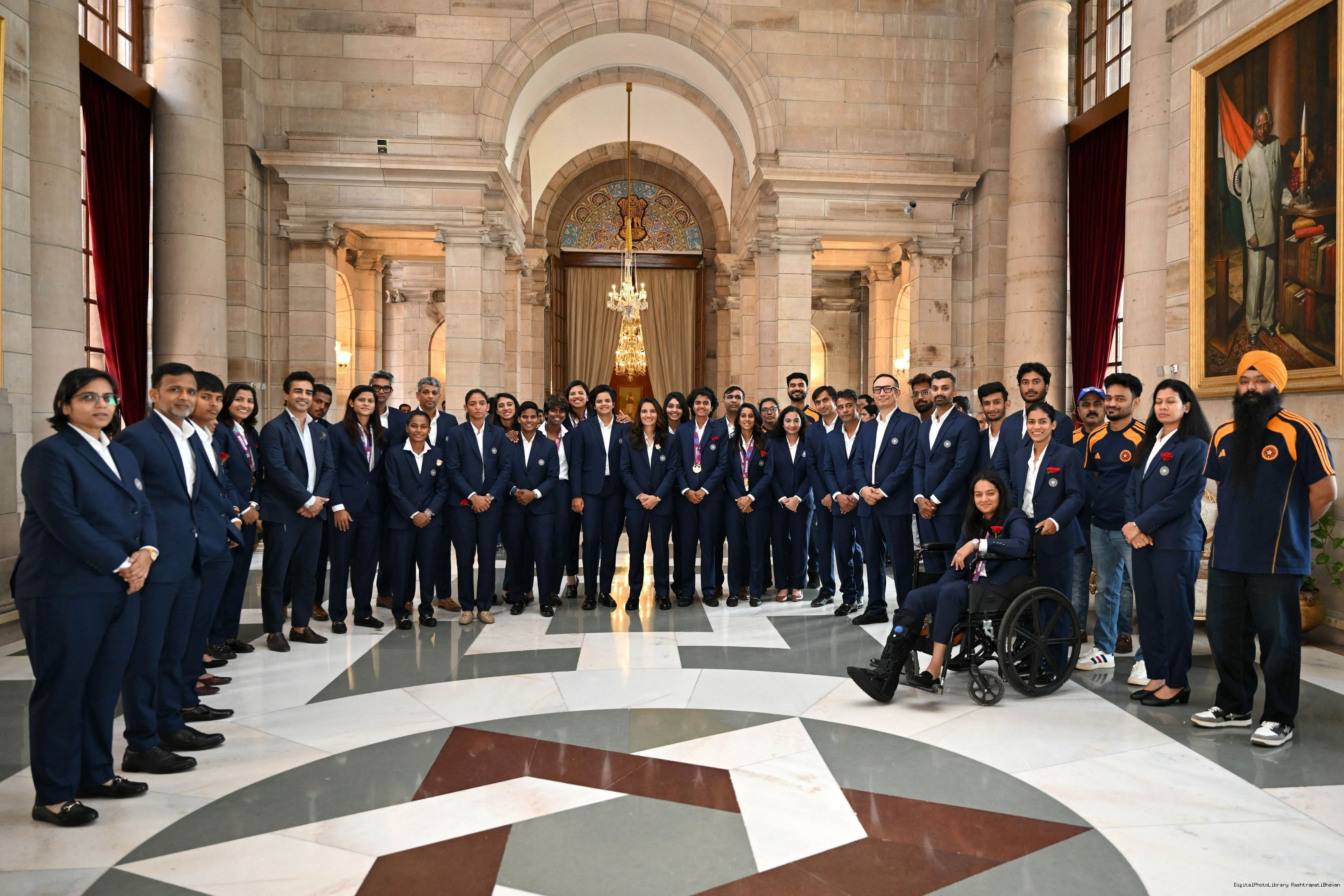 The President met and interacted Members of the Indian Women Cricket Team on November 6, 2025.