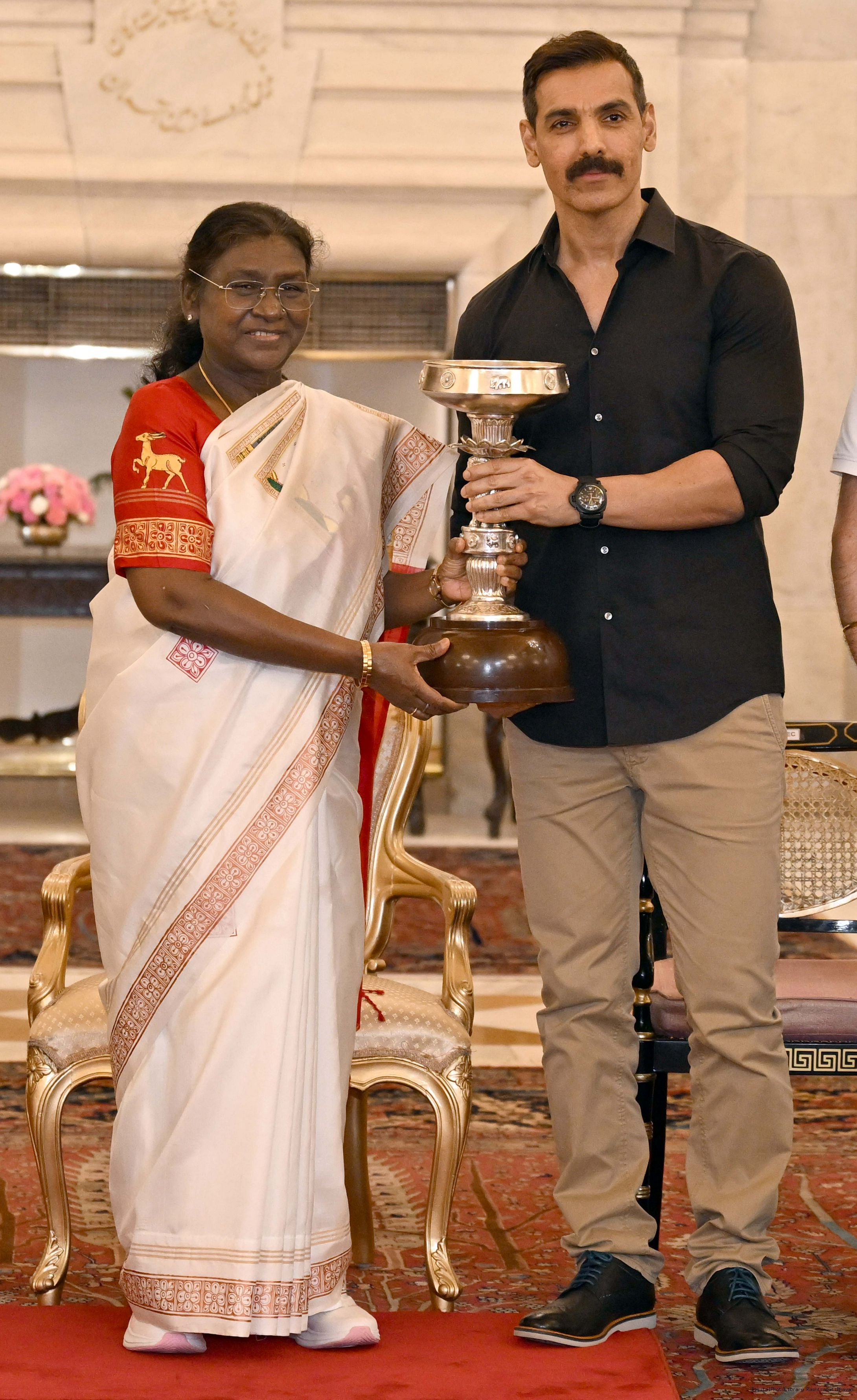 Members of the North East United Football Club, who won the President’s Cup of the Durand Cup Tournament, 2025, called on the President Droupadi Murmu at Rashtrapati Bhavan on August 27, 2025.