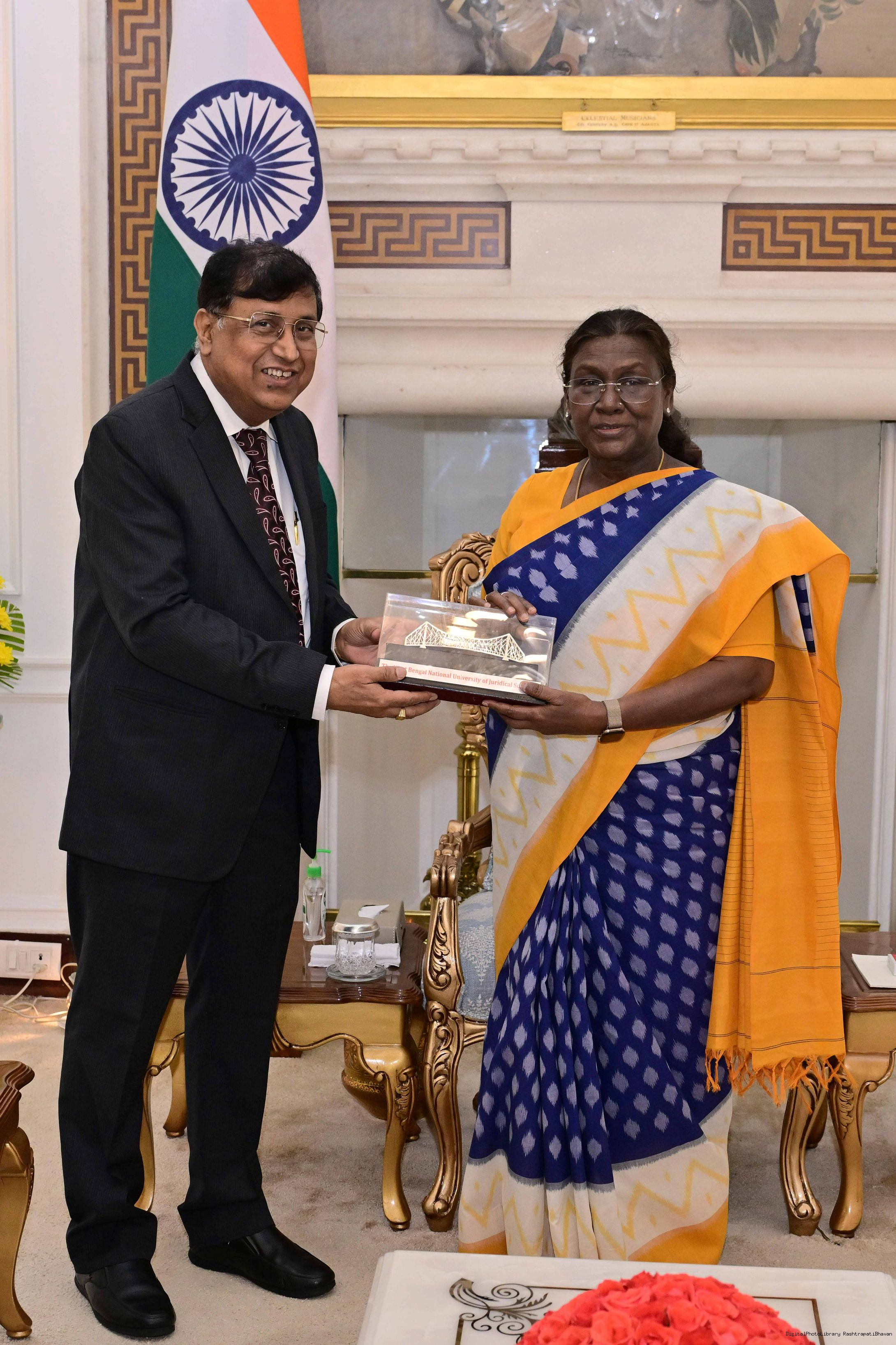 Professor Dr. Nirmal Kanti Chakrabarti, VC, The West Bengal National University of Juridical Science, Kolkata meeting with the President of India, Smt. Droupadi Murmu at Rashtrapati Bhavan on May 26, 2025.