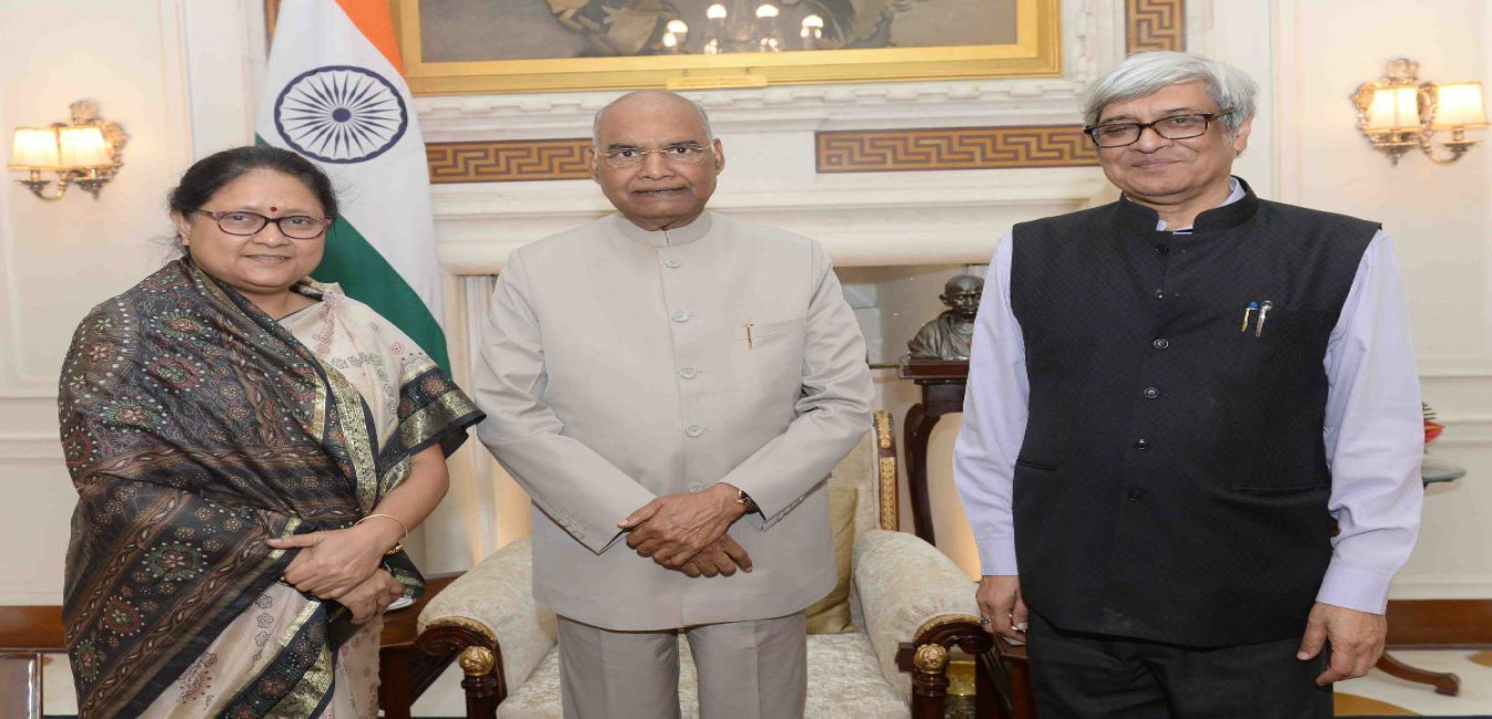 Prof. Devi Prasad Dwivedi along with his son Shri Vishrut Dwivedi meeting with the President of India, Smt. Droupadi Murmu, at Rashtrapati Bhavan on Sep 23, 2022.