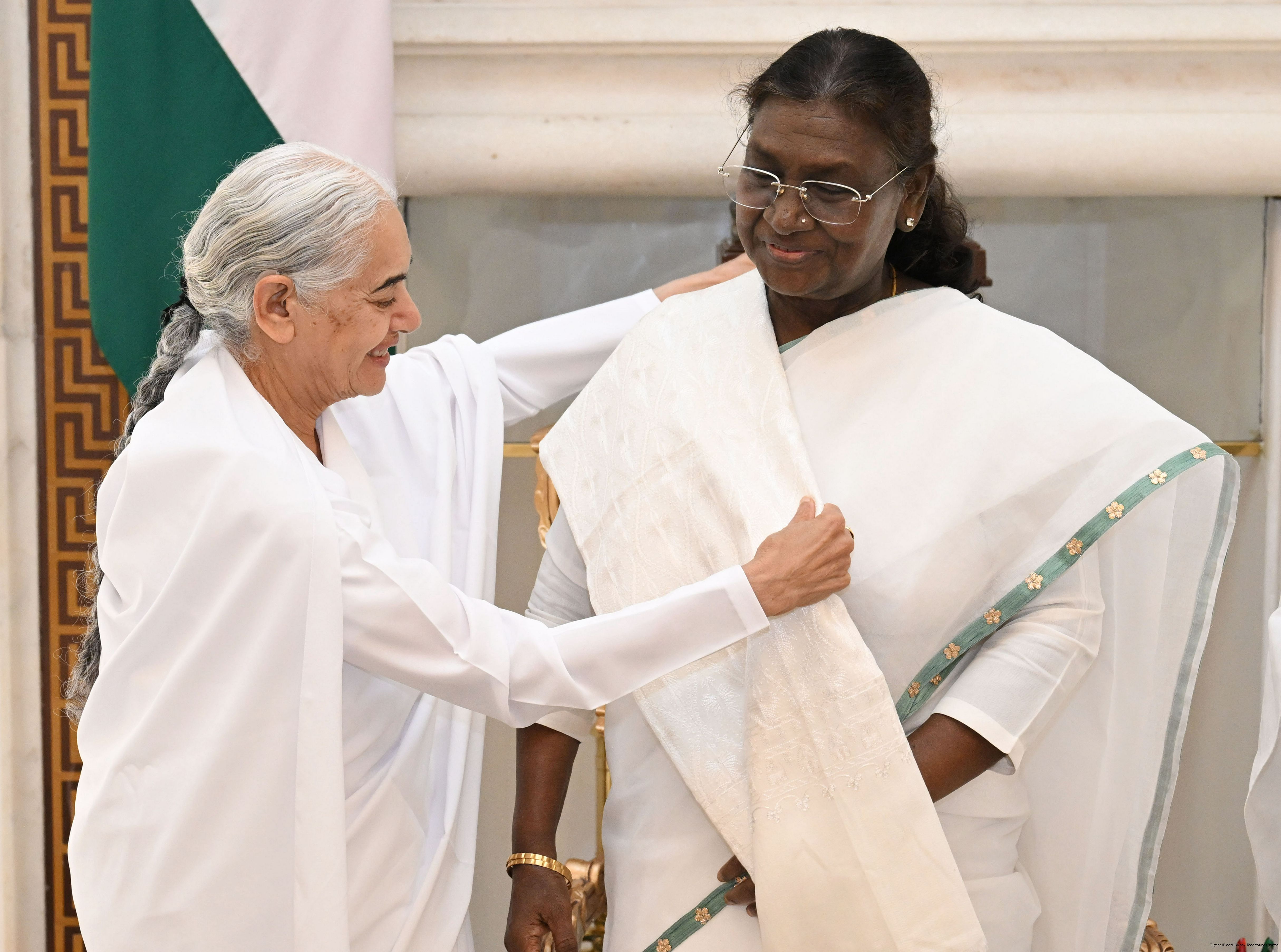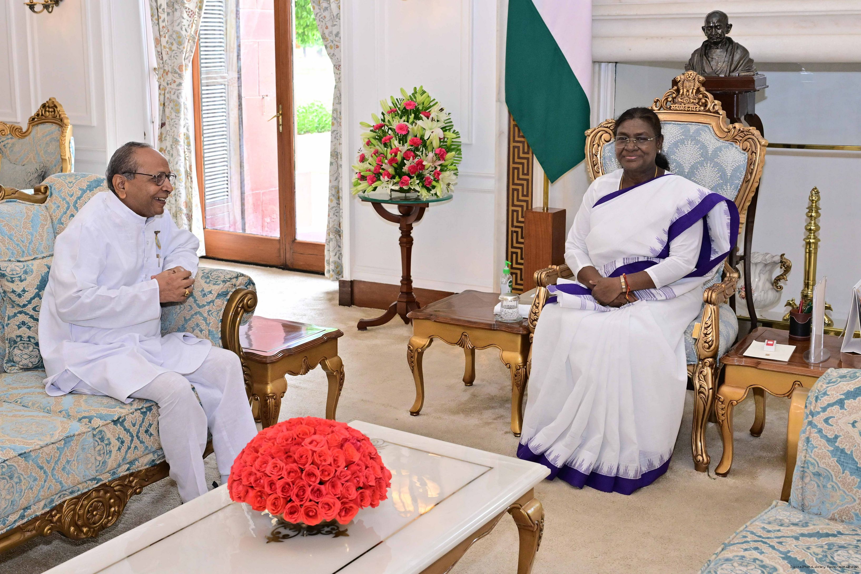 Rajyogi Dr. BK Nathmal, National Co-ordinator, Brahma Kumaris, Cuttak, Odisha meeting with the President of India, Smt Droupadi Murmu at Rashtrapati Bhavan on July 8, 2025.