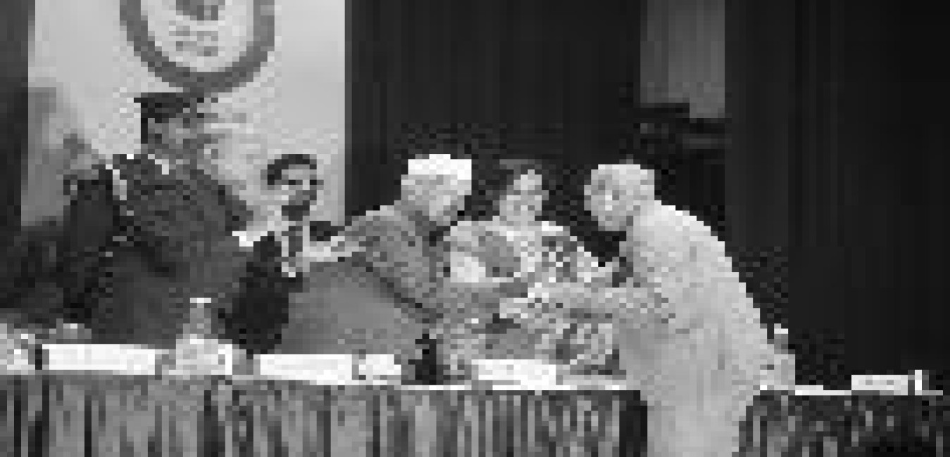 The President of India, Dr. Shankar Dayal Sharma addressing the 'Serva Dharma Samagam: Many Faiths-One India' at Teen Murti House in New Delhi on November 19, 1994.