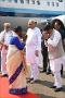 The President of India, Smt. Droupadi Murmu being received by the Governor of Odisha, Prof. Ganeshi Lal, the Chief Minister, Shri Naveen Patnaik and the Union Education Minister, Shri Dharmendra Pradhan, on her arrival in Bhubaneswar on November 10, 2022. The President was accorded a guard of honour on her first visit to Odisha.