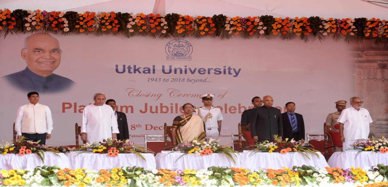 The President of India, Shri Ram Nath Kovind addressing the concluding ceremony of the Platinum Jubilee celebrations of the Utkal University, at Bhubaneswar, in Odisha on December 08, 2019.