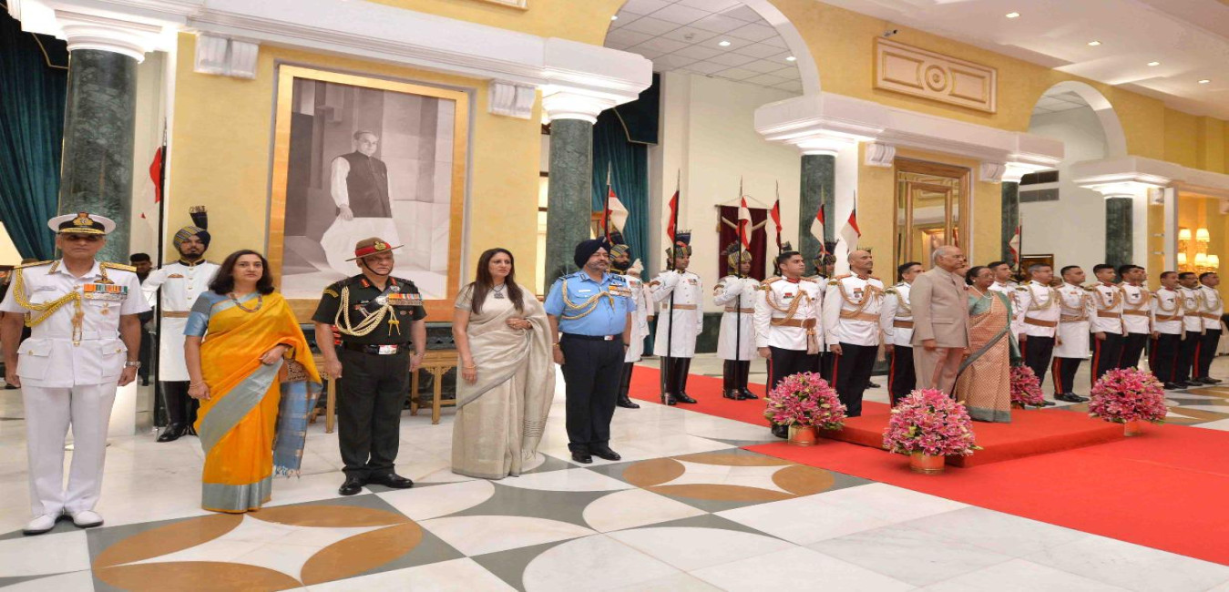 The President of India, Shri Ram Nath Kovind with the Tri-Service Provost personnel, at Rashtrapati Bhavan on August 15, 2019.