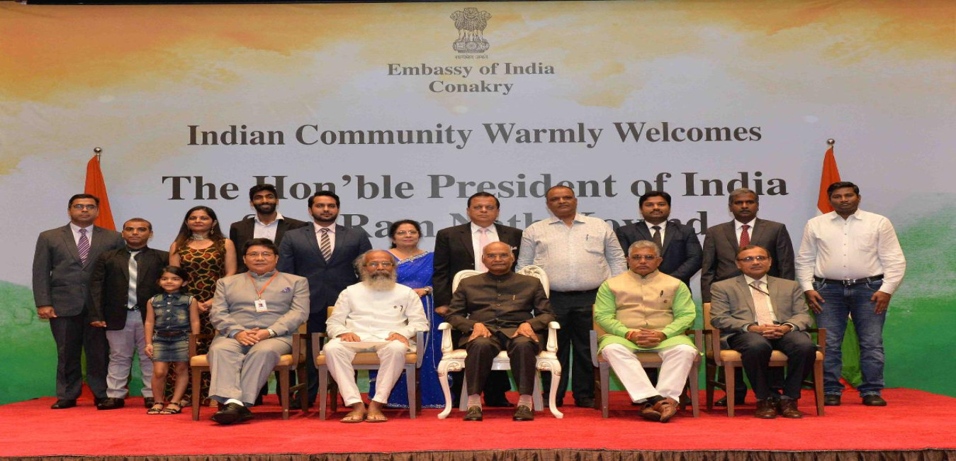 The President of India, Shri Ram Nath Kovind addressing at the Indian Community Reception, at Hotel Sheraton Grand, in Conakry, Guinea on August 03, 2019.