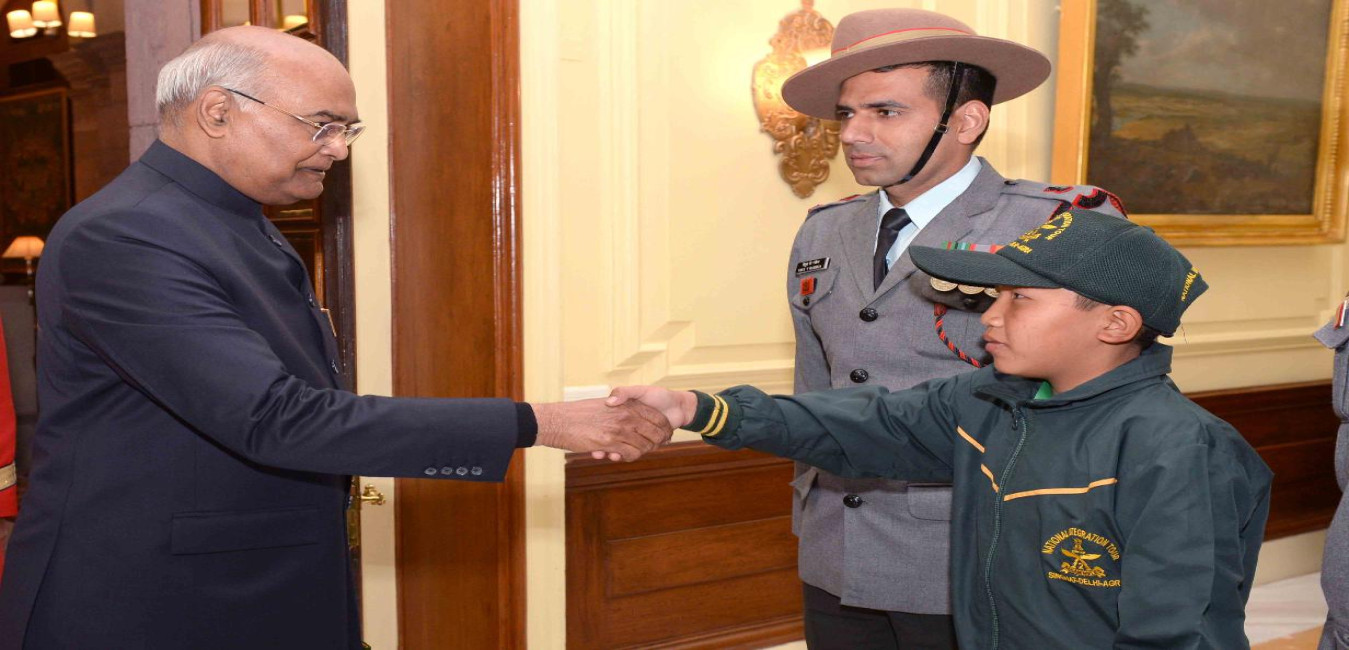 The President of India, Shri Ram Nath Kovind meeting with the students and teachers from Singngat (Manipur) and Aizawl (Mizoram), attending National Integration Tour, organised by Assam Rifles, at Rashtrapati Bhavan on January 14, 2019.