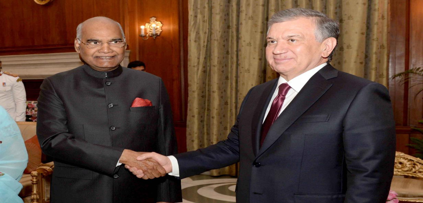 The President of the Republic of Uzbekistan, H.E. Mr. Shavkat Miromonovich Mirziyoyev calling on the President of India, Shri Ram Nath Kovind, at Rashtrapati Bhavan on October 01, 2018.