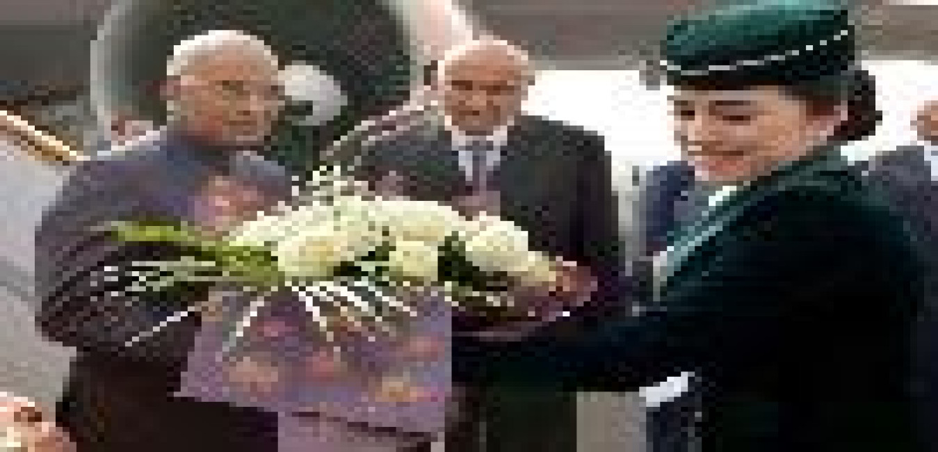 The President of India, Shri Ram Nath Kovind and First Lady, Smt. Savita Kovind being received by the Deputy Prime Minister of Tajikistan, H.E. Mr. Zokirzoda Mahmadtoir Zoir on their arrival, at Dushanbe International Airport, in Tajikistan on October 07, 2018.