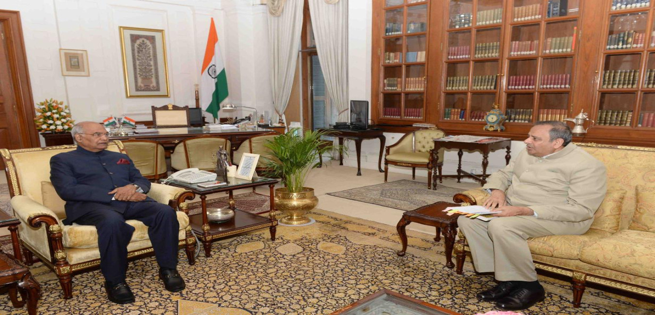 The Secretary, MEA (CPV & OIA), Dr. Dnyaneshwar M. Mulay calling on the President of India, Shri Ram Nath Kovind, at Rashtrapati Bhavan on February 26, 2018.