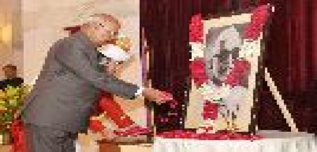 The President of India, Shri Ram Nath Kovind paying floral tributes to Dr. Zakir Hussain, former President of India on the occasion of his Birth Anniversary, at Rashtrapati Bhavan on February 08, 2018. Family members of Dr. Zakir Hussain also paid tributes to him.