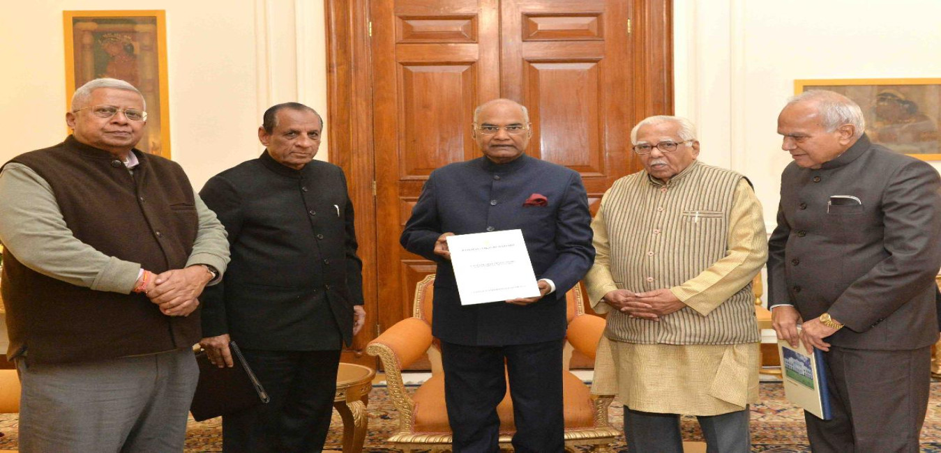 The Chairman, Shri Nand Kumar Sai along with the Vice Chairman and Members of the National Commission for Scheduled Tribes (NCST) meeting with the President of India, Shri Ram Nath Kovind, at Rashtrapati Bhavan on January 02, 2018.