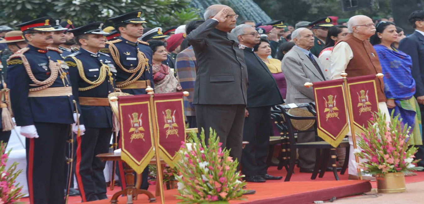 The President of India, Shri Ram Nath Kovind during the presentation of Silver Trumpet and Trumpet Banner to the President's Bodyguard (PBG), at Rashtrapati Bhavan on November 17, 2017.