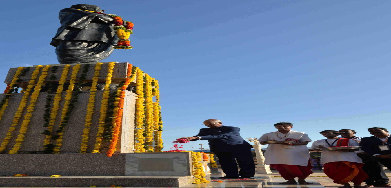 The President of India, Shri Ram Nath Kovind paying floral tributes at the Statue of Sardar Vallabhabhai Patel, at Somnath, in Gujarat on October 02, 2017.