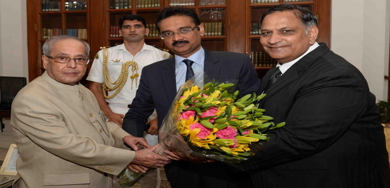 The President of India, Shri Pranab Mukherjee meeting with Shri T. Venkatram Reddy, Chairman & Editor-in-Chief, Deccan Chronicle & The Asian Age, at Rashtrapati Bhavan on March 27, 2017.