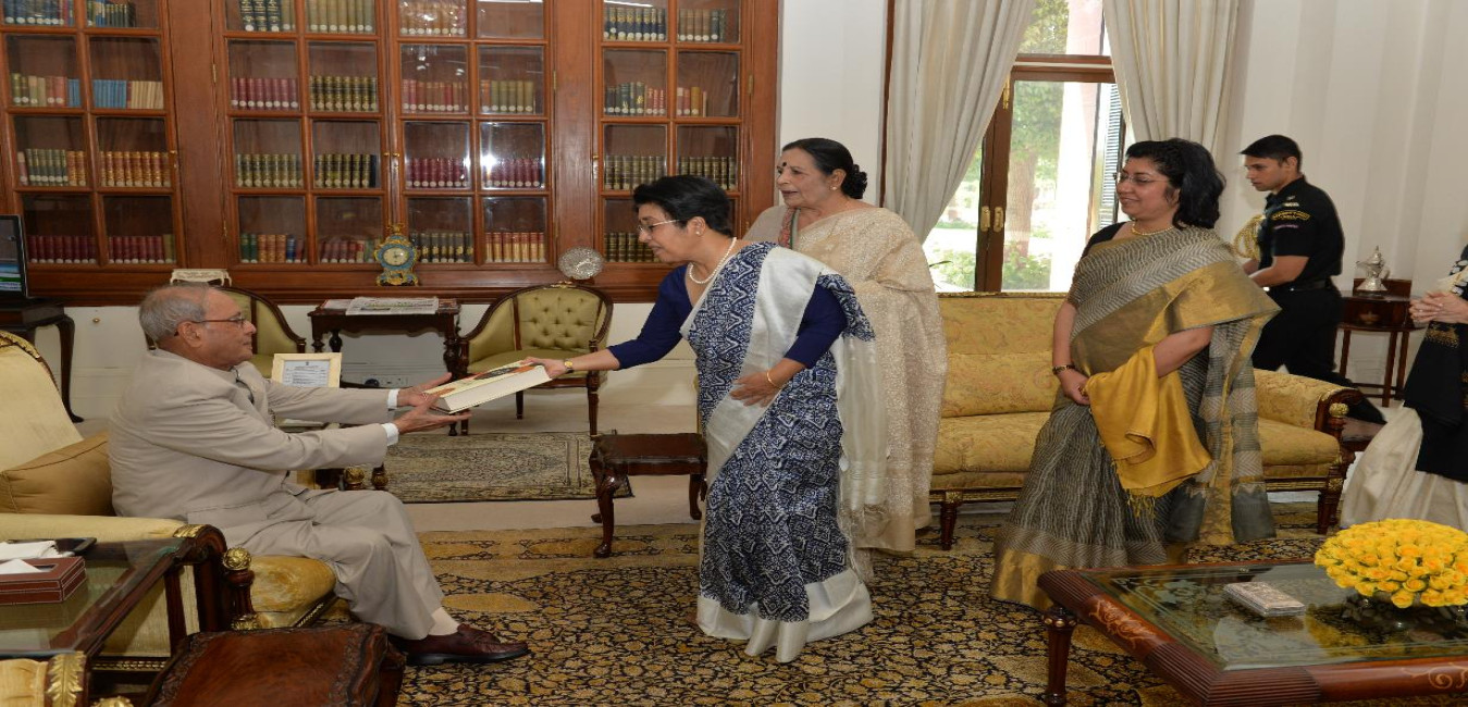 The President of India, Shri Pranab Mukherjee meeting with Dr. Amee Yajnik, President, Ms. Preeti Shah, Secretary and Ms. M. Bhaskar Laxmi, Past President, All India Federation of Women Lawyers, at Rashtrapati Bhavan on March 16, 2017.