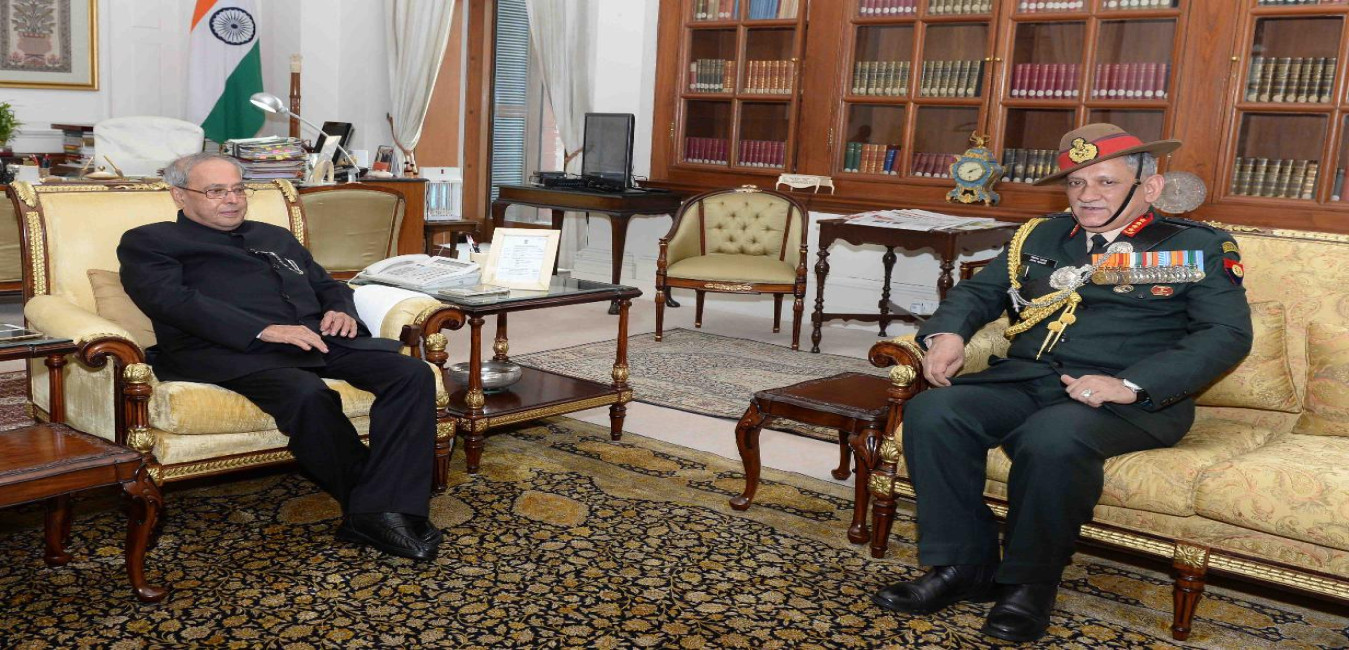 The Chief of Army Staff, General Bipin Rawat greeting the President of India, Shri Pranab Mukherjee, on the occasion of New Year, at Rashtrapati Bhavan on January 01, 2017.