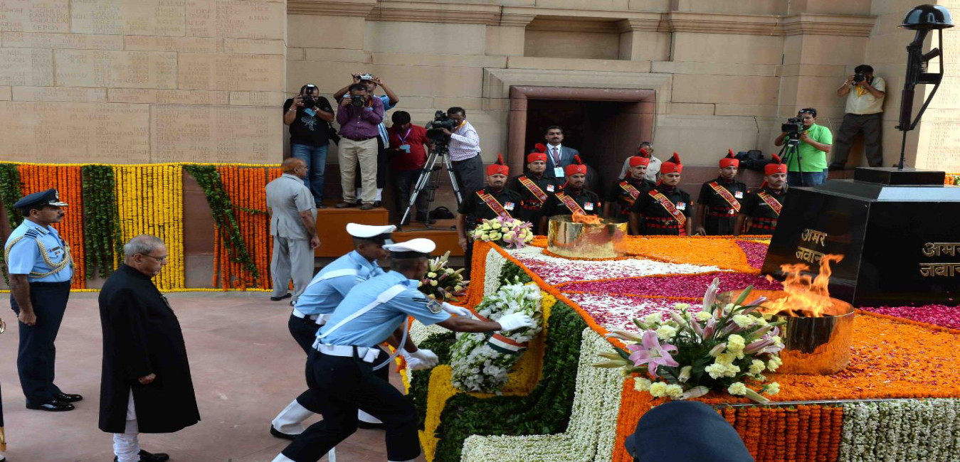The President of India, Shri Pranab Mukherjee laying wreath at Amar Jawan Jyoti, on the occasion of 70th Independence Day, at India Gate, in New Delhi on August 15, 2016.