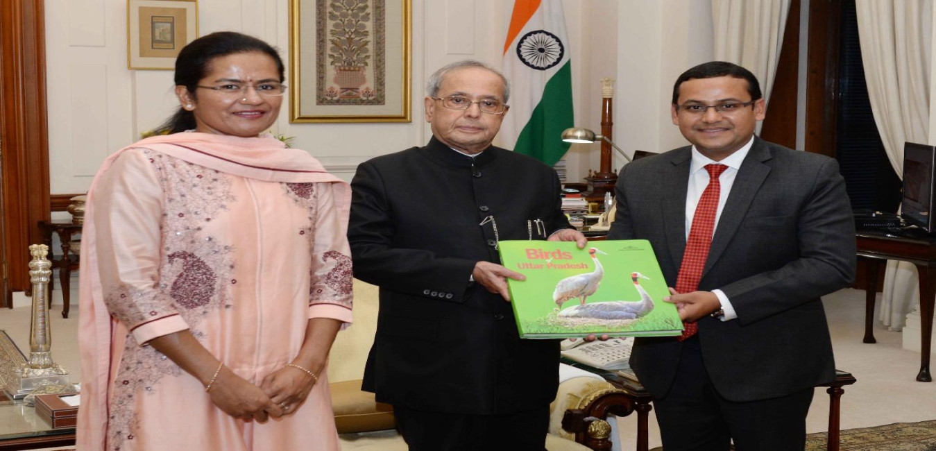 The President of India, Shri Pranab Mukherjee meeting with Smt. Aparna Kumar and Shri Sanjay Kumar, District Magistrate & Collector, Allahabad, at Rashtrapati Bhavan on August 17, 2016.