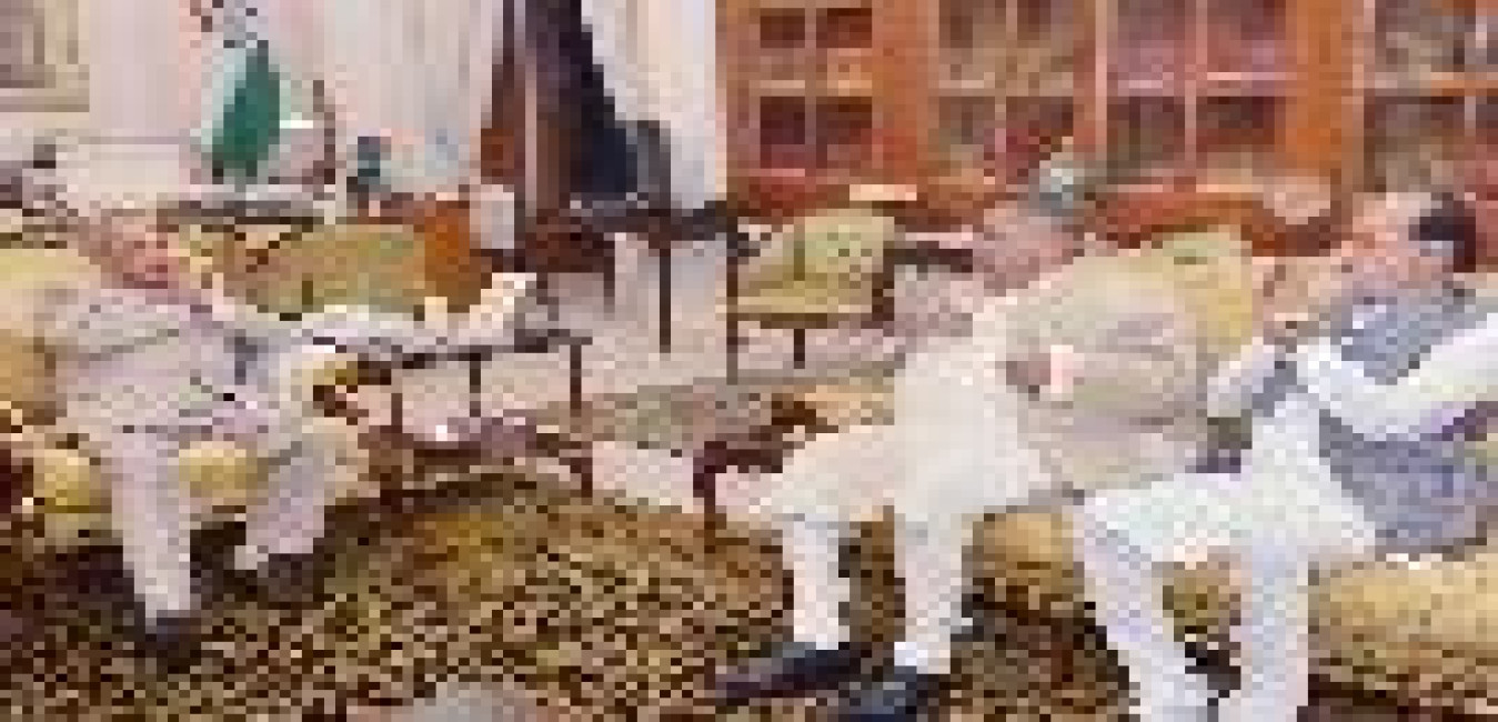 The President of India, Shri Pranab Mukherjee meeting with Shri Ashok Singh, National Vice President, INTUC & Member, Kendriya Hindi Samiti alongwith Nawab Jamin Sahib, Chairman, Indo-Iran Persian Cultural Board, Faizabad, at Rashtrapati Bhavan on August 10, 2016.