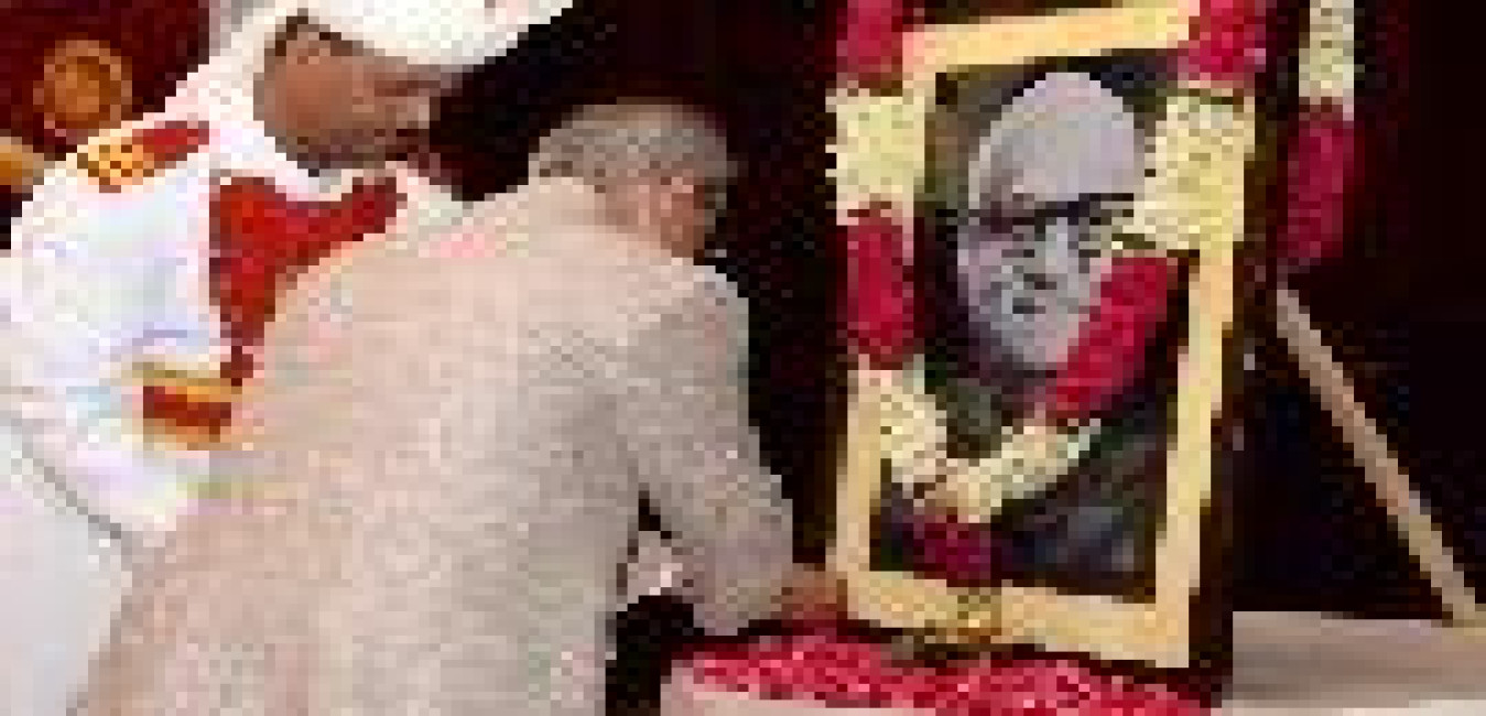 The President of India, Shri Pranab Mukherjee paying Floral Tributes at the Portrait of Former President of India, Shri V.V. Giri on the occasion of his Birth Anniversary, at Rashtrapati Bhavan on August 10, 2016.