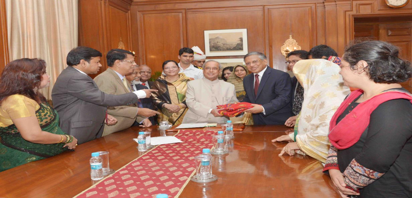The President of India, Shri Pranab Mukherjee meeting with Shri Mohd. Amirul Islam, Executive Director and Shri Mohd. Ajijur Rahman, Managing Director, Jangipur Bengal Mega Food Park Ltd. , at Rashtrapati Bhavan on August 04, 2016.