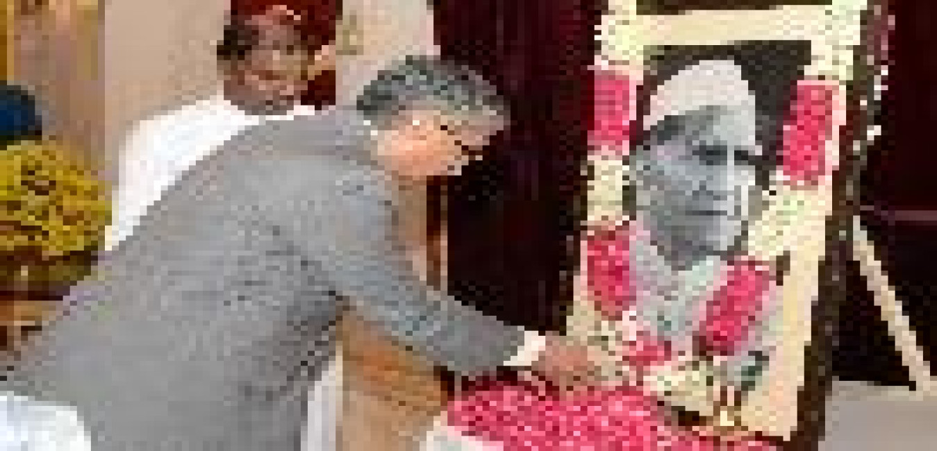The President of India, Shri Pranab Mukherjee paying floral tributes at the portrait of Late Shri Fakhruddin Ali Ahmed, Former President of India on the occasion of his Birth Anniversary at Rashtrapati Bhavan on May 13, 2016. Family members of Late Shri Fakhruddin Ali Ahmed also attended the paying floral tribute ceremony.