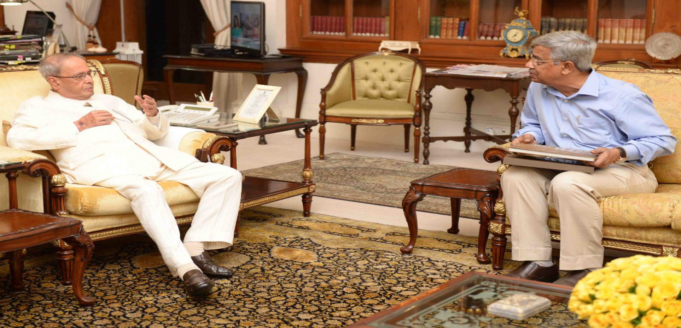 The President of India, Shri Pranab Mukherjee meeting with Prof. Smritikumar Sarkar, Vice Chancellor, The University of Burdwan, at Rashtrapati Bhavan on October 12, 2016.