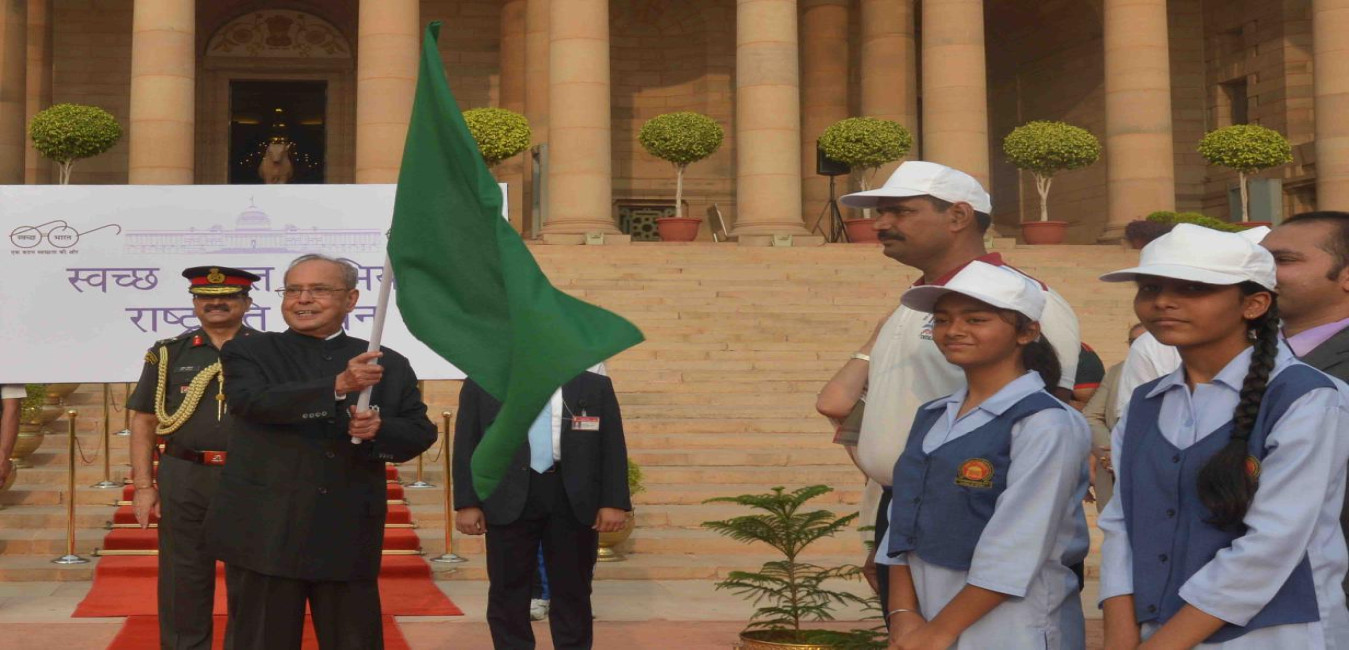The President of India, Shri Pranab Mukherjee flagging off the march for 'Swachch Bharat Abhiyan', at Rashtrapati Bhavan on October 02, 2016.