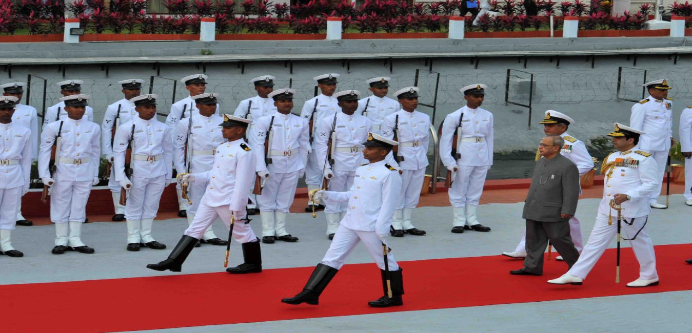 The President of India, Shri Pranab Mukherjee inspecting the Guard of Honour at the International Fleet Review-2016, at Visakhapatnam on February 06, 2016.
