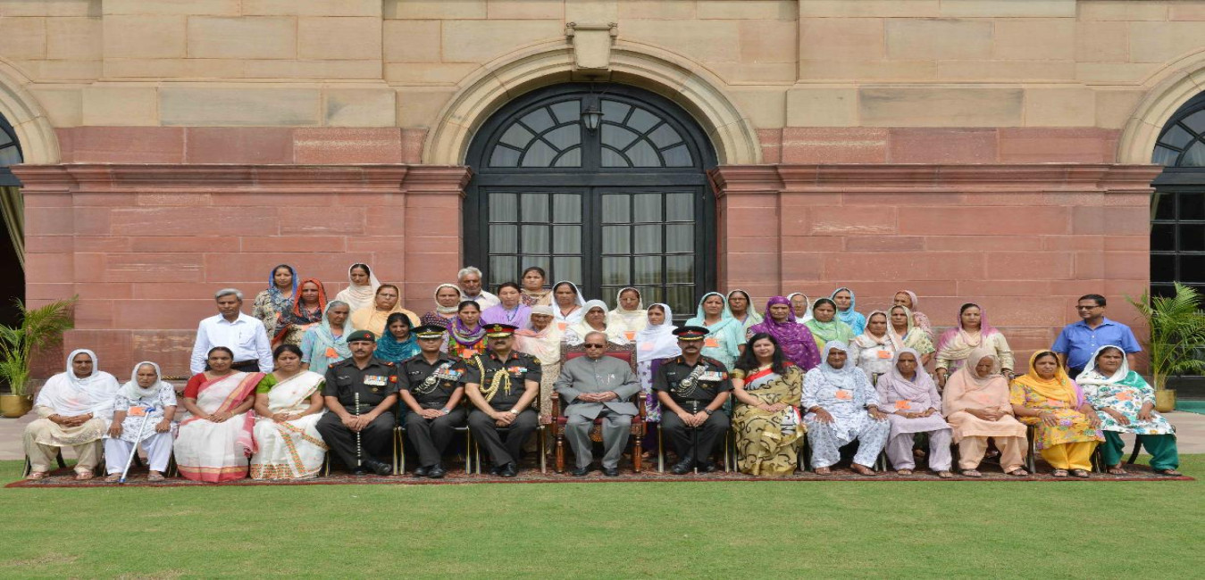 The President of India, Shri Pranab Mukherjee meeting with Veer Naris (War Widows) attending Pilgrimage Tour organised by the 8th JAK LI (SIACHEN) on the occasion of 30th Year of Siachen Operation, at Rashtrapati Bhavan on June 26, 2016.