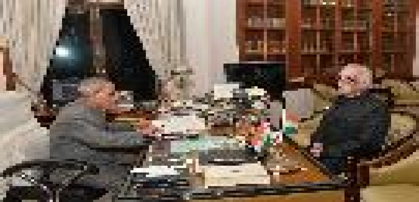 The President of India, Shri Pranab Mukherjee meeting with Dr. Sushobhan Banerjee from Bolpur, at Rashtrapati Bhavan on February 28, 2016.