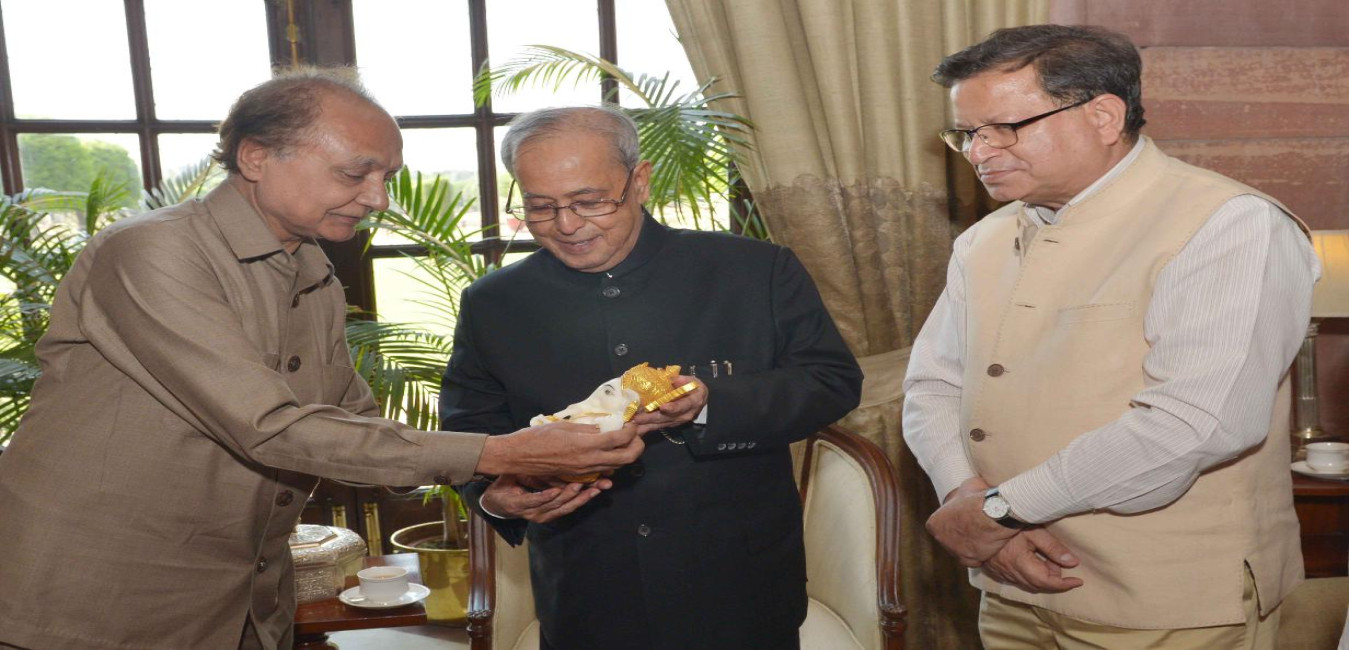 The President of India, Shri Pranab Mukherjee meeting with Shri Krishnamohan Ghosh, at Rashtrapati Bhavan, in New Delhi on October 08, 2015.