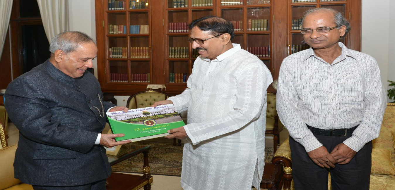 The President of India, Shri Pranab Mukherjee meeting with the Director, Indian Institute of Engineering Science and Technology, Shibpur (formerly BESU, Shibpur), Prof. Ajoy Kumar Ray alongwith Dr. Siddhartha Ghosh, at Rashtrapati Bhavan, in New Delhi on August 04, 2015.