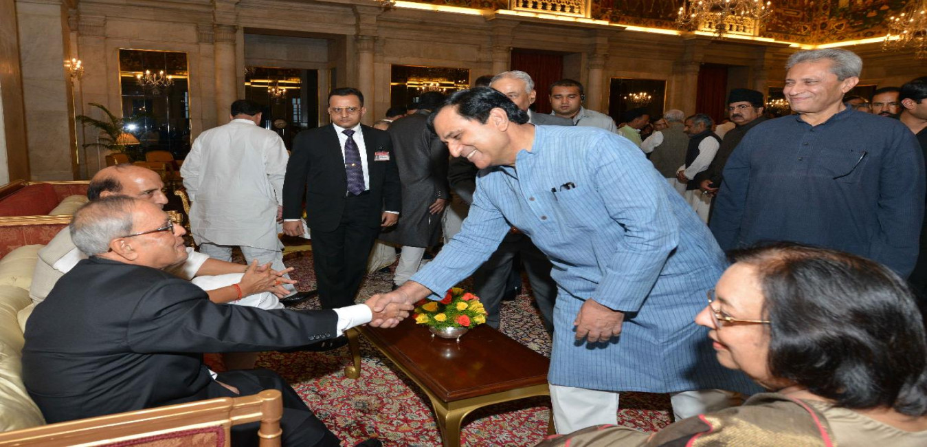 The President of India, Shri Pranab Mukherjee meeting Dr. Prasanna Kumar Patasani, MP (LS), at Rashtrapati Bhavan, in New Delhi on July 14, 2015.