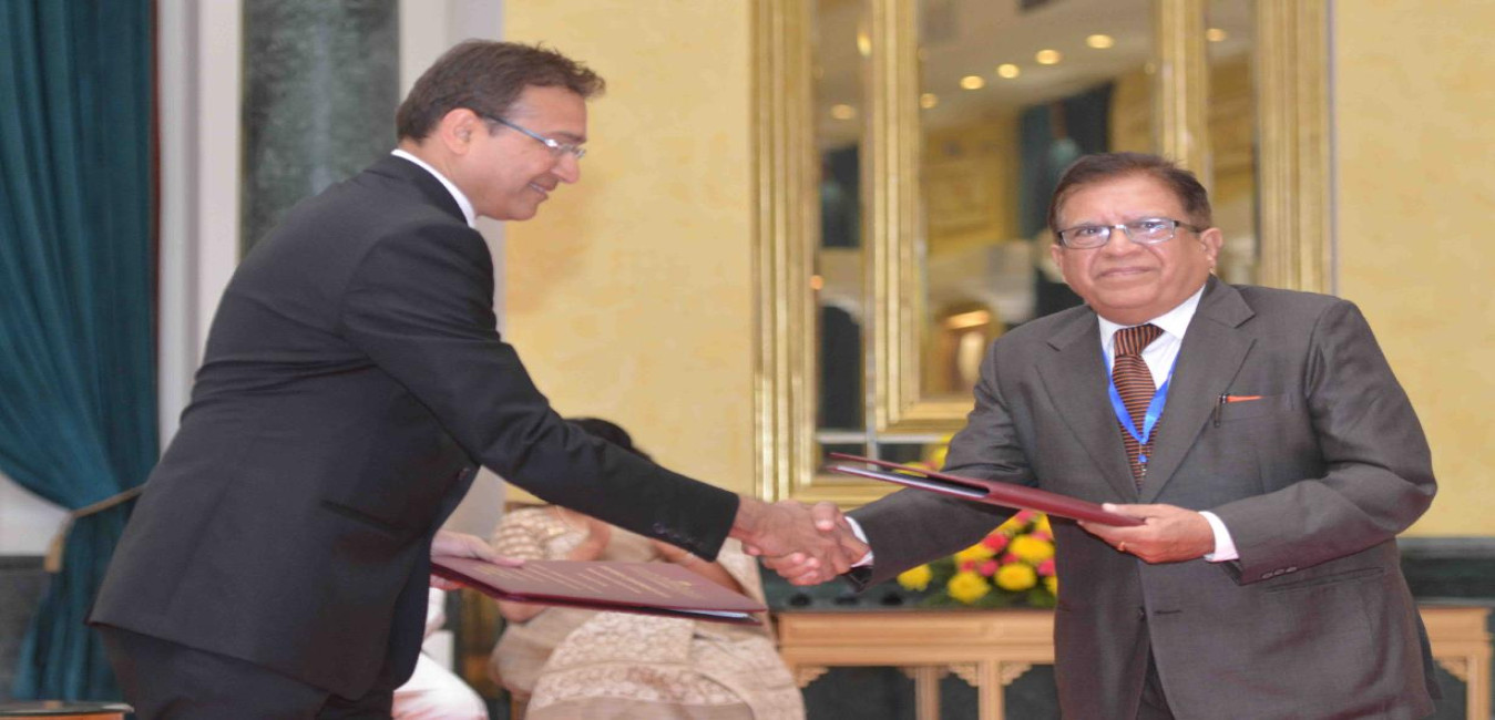 The President of India, Shri Pranab Mukherje witnessing the Exchange of MoUs between Industry and Academic Institutions, at Rashtrapati Bhavan, in New Delhi on November 04, 2015.