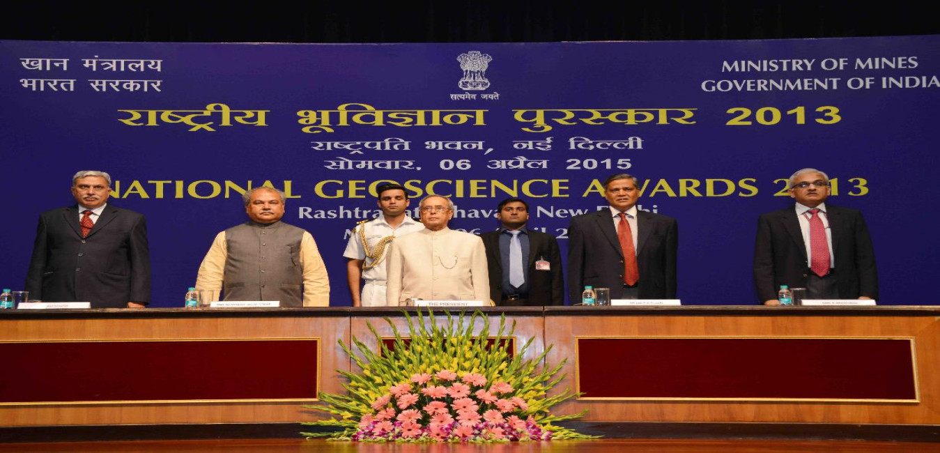 The President of India, Shri Pranab Mukherjee presenting the National Geoscience Awards for the year 2013, at Rashtrapati Bhavan, in New Delhi on April 06, 2015.