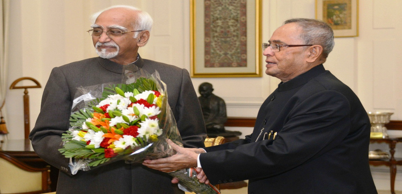 The President of India, Shri Pranab Mukherjee meeting with the Vice President of India, Shri Mohd Hamid Ansari on the occasion of New Year, at Rashtrapati Bhavan in New Delhi on January 01, 2015