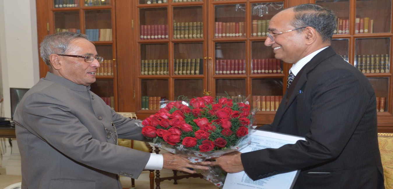 The President of India, Shri Pranab Mukherjee meeting with Shri V.S. Sampath, Chief Election Commissioner of India, at Rashtrapati Bhavan, in New Delhi on January 13, 2015