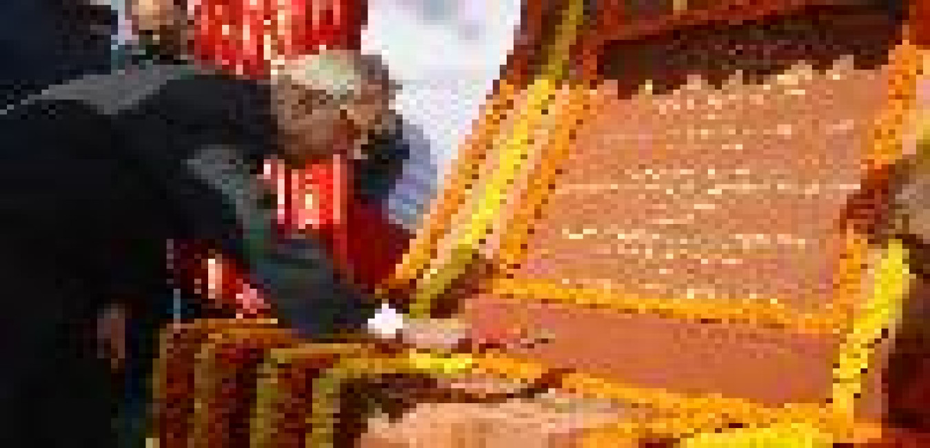 The President of India, Shri Pranab Mukherjee laying the Foundation Stone of the Prayer Hall and inaugurating of Old Age Home and School Building of Bharat Sevashram Sangha at Village Wazirpur, District of Gurgaon in Haryana on Dec 07, 2014