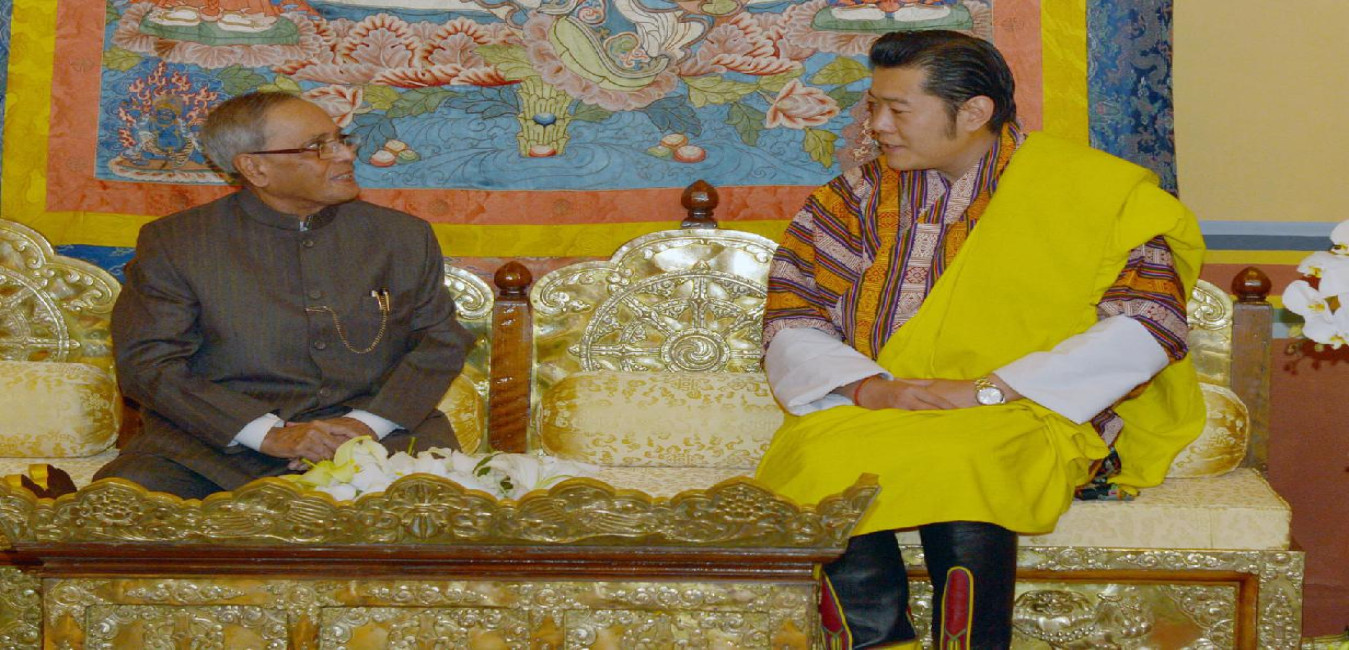 The King of Bhutan, HE Jigme Khesar Namgyel Wangchuck calling on the President of India, Shri Pranab Mukherjee at Thimphu in Bhutan on Nov 07, 2014