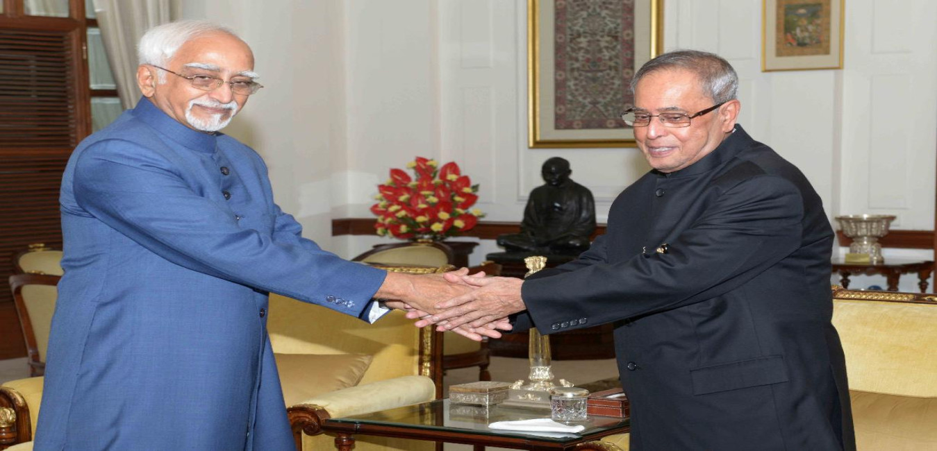The President of India, Shri Pranab Mukherjee meeting with the Vice President of India, Shri Mohd Hamid Ansari on the occasion of Diwali at Rashtrapati Bhavan in New Delhi on Oct 23, 2014