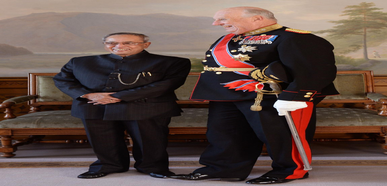 The President of India, Shri Pranab Mukherjee at the Banquet Hosted in Honour of the King of Norway, His Majesty King Harald V at Royal Palace at Oslo in Norway on Oct 13, 2014